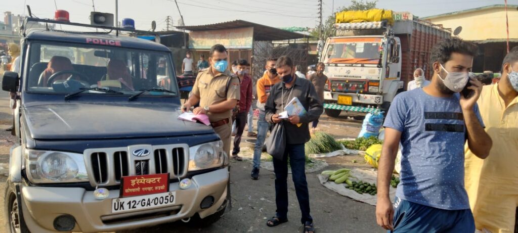 रूडकी गंगनहर कोतवाली पुलिस अब लॉकडाउन का उल्लंघन करने वालों पर सख्त हो गई है पुलिस ने रामपुर स्थित नवीन कृषि मंडी में लॉकडाउन नियमो का उल्लंघन करने वालों का चालान काटा। आज जैसे ही पुलिस की गाड़ी सब्ज़ी मंडी में पहुंची तो मंडी व्यापारियों और फल विक्रेताओं में हड़कंप मच गया पुलिस को देख वयापारी सड़क पर पड़ा माल समेटने में लग गए।