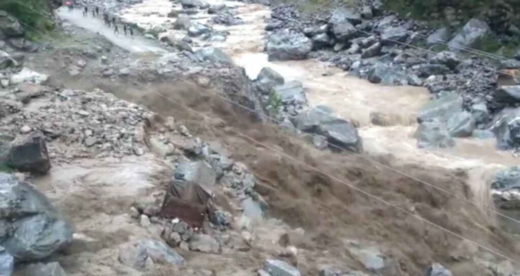 चमोली जिले में मौसम विभाग की चेतावनी के अनुसार पिछले 2 दिनों से लगातार बारिश जारी है जिसके चलते बदरीनाथ राष्ट्रीय राजमार्ग पर नाम बागड़ के पास गधेड़ा उफान पर आ गया है। बद्रीनाथ के लिए माल सप्लाई कर रहा एक ट्रक बीच गदेरे में फस गया जिसमें चालक और सह चालक ने किसी तरह से अपनी जान बचाई वहीं आसपास के गांव गजरे के उफान को देखते हुए दहशत में हैं जिसकी सूचना ग्रामीणों द्वारा तहसील प्रशासन को दी गई है और प्रशासन मौके पर लगातार नजर बनाए हुए हैं। ग्रामीणों का कहना है कि मई-जून के माह में इस तरह के हालात कभी देखने को नहीं मिले। लगातार बारिश से गदेरे उफान ऊपर आ रहे हैं जिससे दहशत होना लाजमी है।