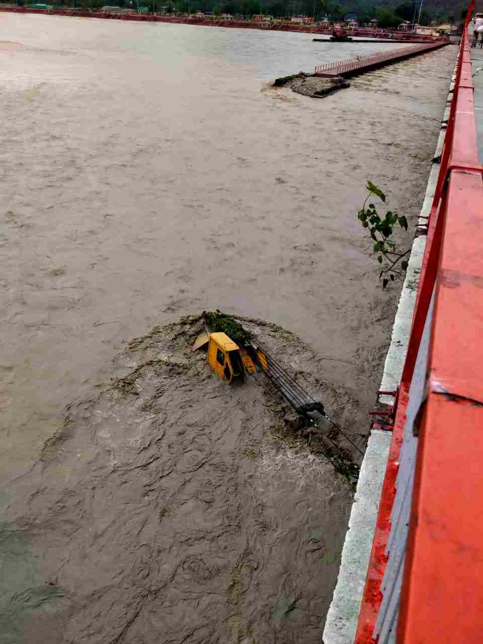 पहाड़ों में लगातार बारिश से हरिद्वार में गंगा का जलस्तर बढ़ गया है। शुक्रवार को यहां चंडी घाट पुल के पास निर्माण सामग्री और क्रेन गंगा बह गई। जिस वहज से यहां निर्माण कार्य बंद कर दिया गया है।पिछले दस वर्षों के दौरान मई महीने में 24 घंटों में कभी इतनी ज्यादा बारिश नहीं हुई। यह मई माह में आज तक के ओवरऑल रिकॉर्ड से कुछ मिमी ही कम रही। बुधवार शाम से गुरुवार शाम तक राजधानी क्षेत्र में बारिश होती रही। मौसम विभाग की ओर से जारी आंकड़ों के अनुसार, बुधवार शाम साढ़े पांच से गुरुवार शाम साढ़े पांच बजे के दौरान कुल 73 मिमी बारिश रिकॉर्ड की गई वही टनकपुर में शारदा के उफान में आने से 9 लोग टापू पर फंस गए। जिन्हें पुलिस व प्रशासन ने रेस्क्यू कर बचाया। थाना टनकपुर की रेस्क्यू पुलिस टीम, जल पुलिस व फायर सर्विस ने साथ मिलकर रस्से, टायर ट्यूब व मोटर बोट की सहायता से 10 घंटे रेस्क्यू चला कर टापू में फंसे हुए 9 लोगों को सकुशल बाहर निकाला।जिनके नाम पते रंजीत कश्यप पुत्र नत्थू लाल उम्र करीब 45 वर्ष, मोर कली पत्नी रंजीत कश्यप, सुशीला पुत्री रंजीत कश्यप, चंचला पुत्री रंजीत कश्यप, संजना पुत्री रंजीत कश्यप, अंजलि पुत्री रंजीत कश्यप, मिथिलेश पुत्री रंजीत कश्यप, हिमांशु पुत्र रंजीत कश्यप व दीपांशु पुत्र रंजीत कश्यप हैं।
