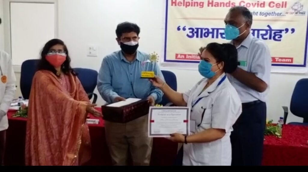 रूडकी के हैल्पिंग हैंड कोविड सेल का आज डेढ़ माह बाद समापन कर दिया गया जिन लोगों ने इस सेल में अपना महत्त्वपूर्ण योगदान रहा उन्हें मंच पर भाजपा विधायक प्रदीप बत्रा द्वारा सम्मानित भी किया गया। इस दौरान तमाम संगठनों के साथ साथ नगर निगम ओर से मुख्य नगर अधिकारी नूपुर वर्मा को सम्मानित किया गया। इस मौके पर जॉइंट मजिस्ट्रेट नमामि बंसल ने कहा कि जब इस हेल्पिंग हैंड्स कोविड सेल को चलाने के लिए विधायक प्रदीप बत्रा ने उनके सामने प्रस्ताव रखा तो उस समय कोरोना महामारी का प्रभाव काफी बढ़ा हुआ था उस समय काफी चुनोतियाँ थीं लेकिन जैसे जैसे हैल्पिंग हैंड्स कोविड सेल को तैयार किया जाने लगा तो इसके बेहतर परिणाम सामने आने लगे बाहर से कोरोना के मरीज़ों की संख्या बढ़ने लगी और लोगों को इस सैन्टर में बेहतर उपचार मिला।