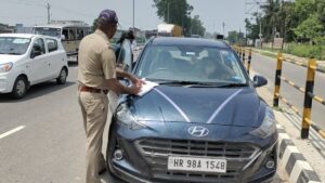 यातायात पुलिस के अधिकारी भी चैकिंग अभियान में लगे हुए हैं। रामवीर सिंह ने बताया कि महिला का आईकार्ड से भी नहीं लगा कि महिला हरियाणा पुलिस में है।फिलहाल महिला का चालान काट दिया गया है।