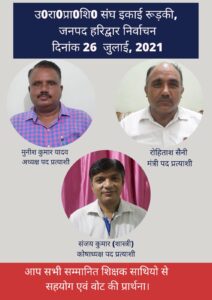 गौरतलबहै कि उत्तराखंड राज्य प्राथमिक शिक्षक संघ रुड़की इकाई का चुनाव 26 जुलाई को होना प्रस्तावित है उससे पूर्व रुड़की ब्लॉक के पदाधिकारियों द्वारा कई बार आम बैठक भी आयोजित हो चुकी हैं।