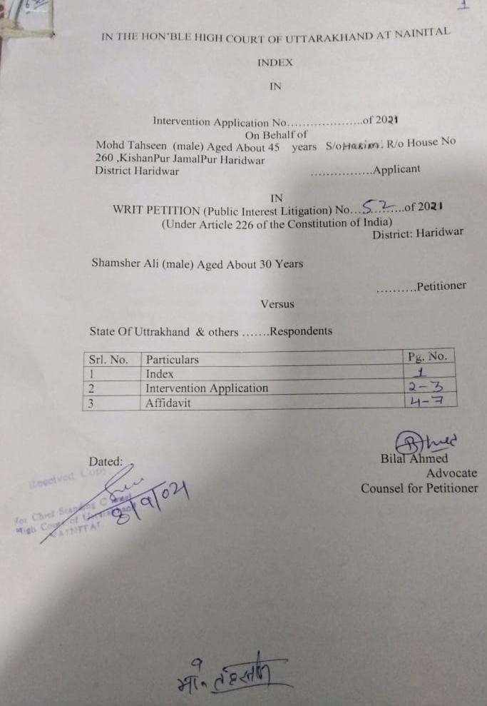 हरिद्वार। किशनपुर निवासी पत्रकार मोहम्मद तहसीन ने नैनीताल हाईकोर्ट में हरिद्वार त्रिस्तरीय पंचायत चुनाव को लेकर विचाराधीन याचिका में पक्षकार बनने के लिए प्रार्थना पत्र दिया जो कि हाईकोर्ट ने स्वीकार कर लिया है। अब इस याचिका पर शुक्रवार को सुनवाई होने की संभावना है। दरअसल,शमशेर की ओर से दायर याचिका पर मई माह में निर्वाचन आयोग के वकील ने अपना जवाब दिया था, जिसमें कहा था कि परिसीमन हो चुका है । मतदाता सूची बन चुकी है। अब अधिसूचना जारी होनी है। लेकिन इसके बाद इस याचिका पर कोई सुनवाई नहीं हो सकी । याचिका अनडेटेड हो गई।