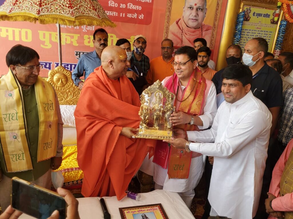 पहली बार उत्तराखंड का मुख्यमंत्री बनने के बाद पुष्कर सिंह धामी रूड़कीं के जीवनदीप आश्रम भी पहुंचे जहां उन्होंने श्री सिद्धबली गणपति महोत्सव की स्थापना पूजा की ।इस अवसर पर जीवनदीप आश्रम के परमाध्यक्ष जूना अखाड़ा के वरिष्ठ महामंडलेश्वर स्वामी यतीन्द्रानन्द गिरि जी महाराज का उन्होंने आशीर्वाद ग्रहण किया इस अवसर पर स्वामी यतीन्द्रानन्द गिरि महाराज ने बताया की केसरी पुष्कर धामी बड़े ही धार्मिक और सामाजिक भावना से भरे हुए हैं महाराज ने आशीर्वाद देते हुए कहा कि पुष्कर धामी 12 वर्ष तक लगातार उत्तराखंड के मुख्यमंत्री रहेंगे और उत्तराखंड को निरंतर विकास के पथ पर आगे बढ़ाते रहेंगे।