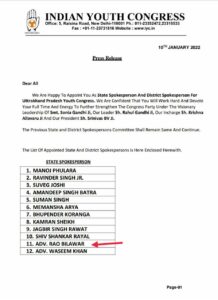 यूथ कांग्रेस ने झबरेड़ा निवासी एडवोकेट राव बिलावर को प्रदेश प्रवक्ता नियुक्त किया है। इस नियुक्ति के बाद उन्होंने पार्टी हाईकमान का आभार व्यक्त किया साथ ही उनके समर्थकों ने उन्हें शुभकामनाएं प्रेषित की है। इस नियुक्ति के बाद से ही उनके समर्थकों में भारी उत्साह का माहौल है। प्रदेश युवा कांग्रेस ने पूरे प्रदेश में 12 प्रवक्ताओं की नियुक्ति की है जिसमें झबरेड़ा निवासी राव बिलावर को भी जगह दी गई है।
