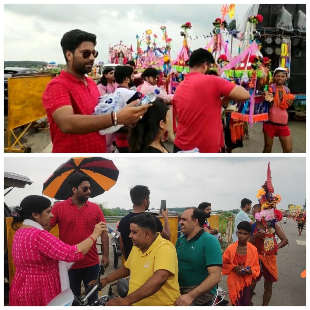 रूड़कीं से लेकर हरिद्वार तक कावड़ियों का सैलाब है।पंचक के बाद बड़ी संख्या में शिवभक्त हरिद्वार से गंगा जल लेकर लौटने लगे है। इस दौरान जहां पुलिस प्रशासन ने सुरक्षा के कड़े इंतजाम किए हैं तो वहीं गांव के लोग और समाज सेवी संगठन भी शिवभक्तों की सेवा के लिए आगे आए हैं। सिविल लाइंस निवासी त्यागी समाज द्वारा हरिद्वार मार्ग पर शिवभक्तों के लिए एक पानी,कोल्ड्रिंक्स और फल वितरित करने के लिए शिविर लगाया गया है।इस दौरान त्यागी समाज का पूरा परिवार एक साथ दिखाई दिया जिनमे परिवार की महिलाएं भी शामिल थीं। इस दौरान हज़ारों की संख्या में शिवभक्तों को तरल पदार्थ की बोतलें दी गईं।
