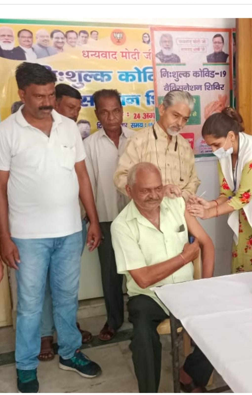 प्रधानमंत्री नरेंद्र मोदी के निशुल्क टीकाकरण कार्यक्रम के अंतर्गत वरिष्ठ आयुर्वेद चिकित्सक एवं समाजसेवी वैद्य टेक वल्लभ के कैंप कार्यालय सिविल लाइन जादूगर रोड पर कोविड-19 महामारी से बचाव हेतु निशुल्क टीकाकरण शिविर आयोजित किया गया। जिसमें प्रथम द्वितीय और बूस्टर डोज आमजन को लगाई गई।इस सुविधा का लाभ आम लोगों ने उठाते हुए राहत महसूस की।