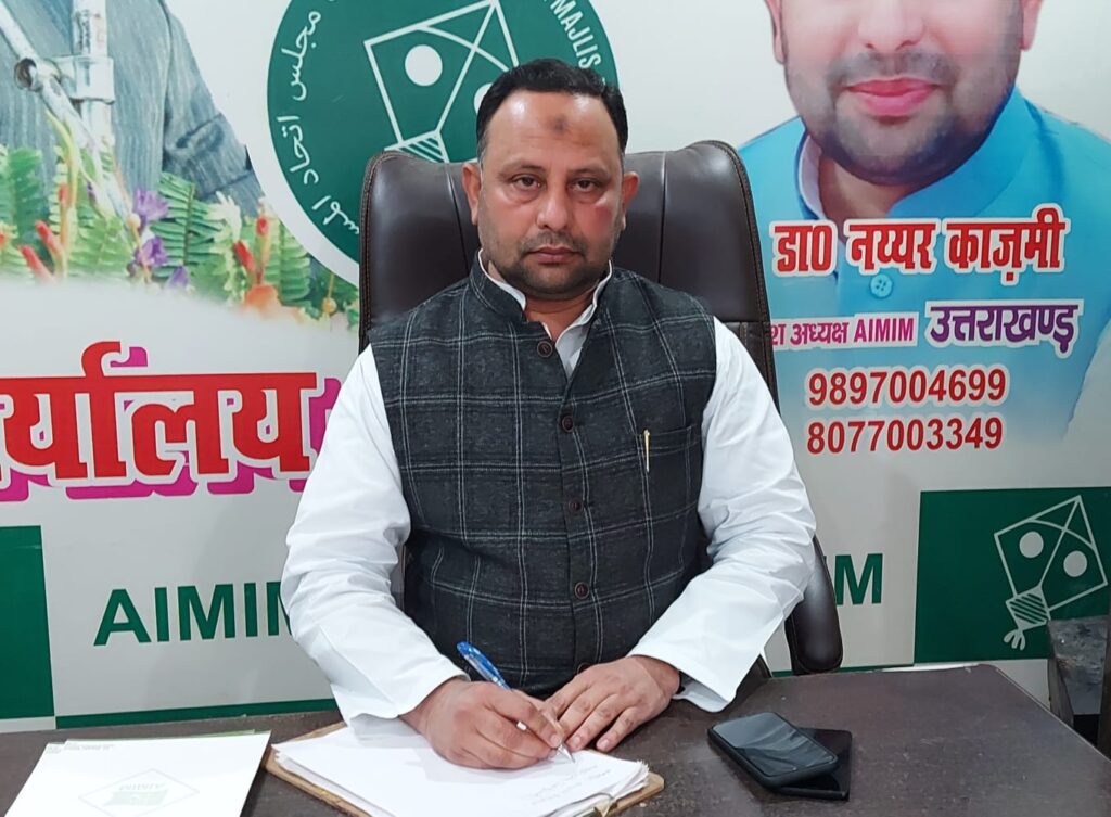 रुड़की ऑल इंडिया मजलिस-ए-इत्तिहाद उल मुस्लिमीन उत्तराखंड के प्रदेश अध्यक्ष डॉक्टर नय्यर काजमी ने सूबे के मुख्यमंत्री पुष्कर सिंह धामी को पत्र भेजकर हल्द्वानी के इंदिरा नगर, बनभूलपुरा में रेलवे विभाग द्वारा अतिक्रमण हटाने के नाम पर वर्षों से बसी बस्ती को हटाए जाने संबंधी निर्णय पर अपना संज्ञान लेकर सरकार से समस्या का समाधान किए जाने की मांग की है।
