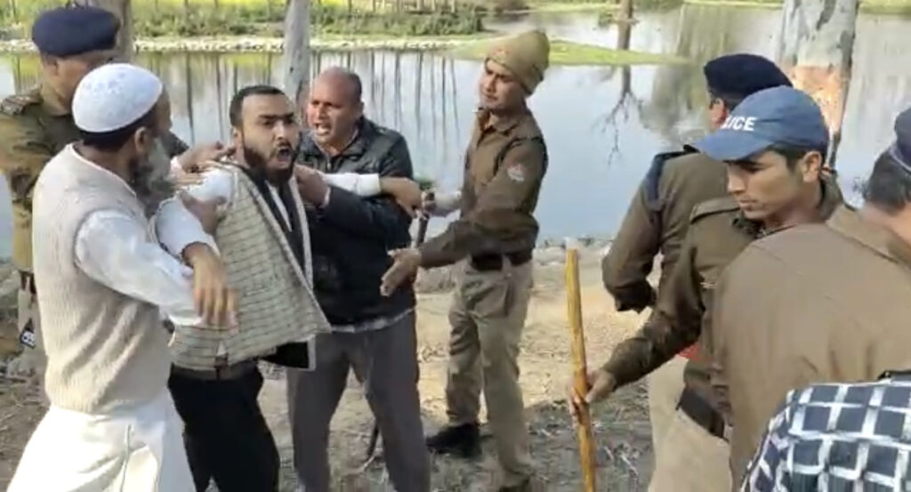 भगवानपुर के खेलपुर गांव में निर्माणाधीन नाले का विरोध कर रहे भारतीय किसान यूनियन बेदी के कार्यकर्ताओं और मातलुब प्रधान के बीच मौके पर जमकर कहासुनी और नोकझोंक हुई जिसके चलते मौके पर अफरातफरी मच गई ।हंगामा इतना बढ़ा की मौके पर भारी पुलिस फोर्स को पहुंचना पड़ा। इस दौरान पुलिस ने हंगामा कर रहे पांचों लोगों को हिरासत में ले लिया और पुलिस थाने में ले गई जिनका शांति भंग में चालान किया गया है।