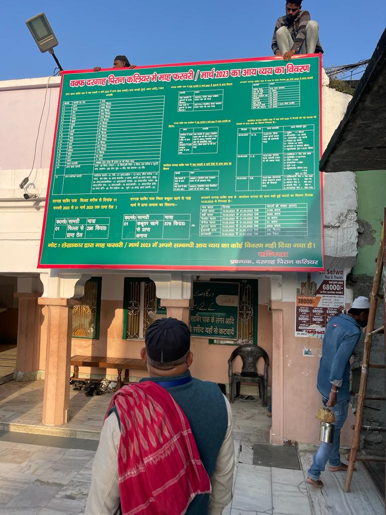विश्व प्रसिद्ध दरगाह पिरान कलियर शरीफ में इंतजाम लगातार बेहतर होते जा रहे हैं। दरगाह प्रबंधन की पूरी कोशिश है की दरगाह के निजाम को और बेहतर बनाया जाए और कार्यों में पूरी पारदर्शिता बनी रहे। इसके लिए लगातार कोशिशें जारी हैं।दरगाह कार्यालय में पहली बार किसी प्रबंधक ने फरवरी मार्च 2023 के आय व्यय का ब्यौरा सार्वजनिक किया है जिसे कार्यालय पर चस्पा भी कर दिया गया है ताकि किसी के मन में कोई दरगाह को लेकर किसी तरह की कोई भ्रांति ना रहे।