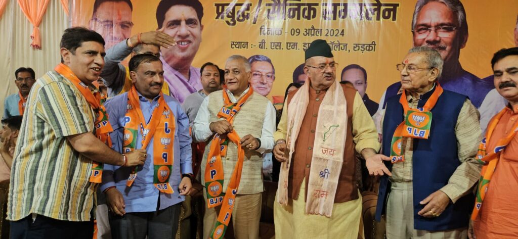 धर्मवीर शर्मा , चंद्र प्रकाश बाटा,,प्रदीप त्यागी ,अशोक आर्य आदि भाजपा पदाधिकारी गण एवं कार्यकर्ता उपस्थित रहे*रुड़की में प्रबुद्ध नागरिक और सैनिक सम्मेलन का आयोजन, केंद्रीय मंत्री जनरल वीके सिंह एवं उत्तराखंड कैबिनेट मंत्री गणेश जोशी रहे उपस्थित रहे।