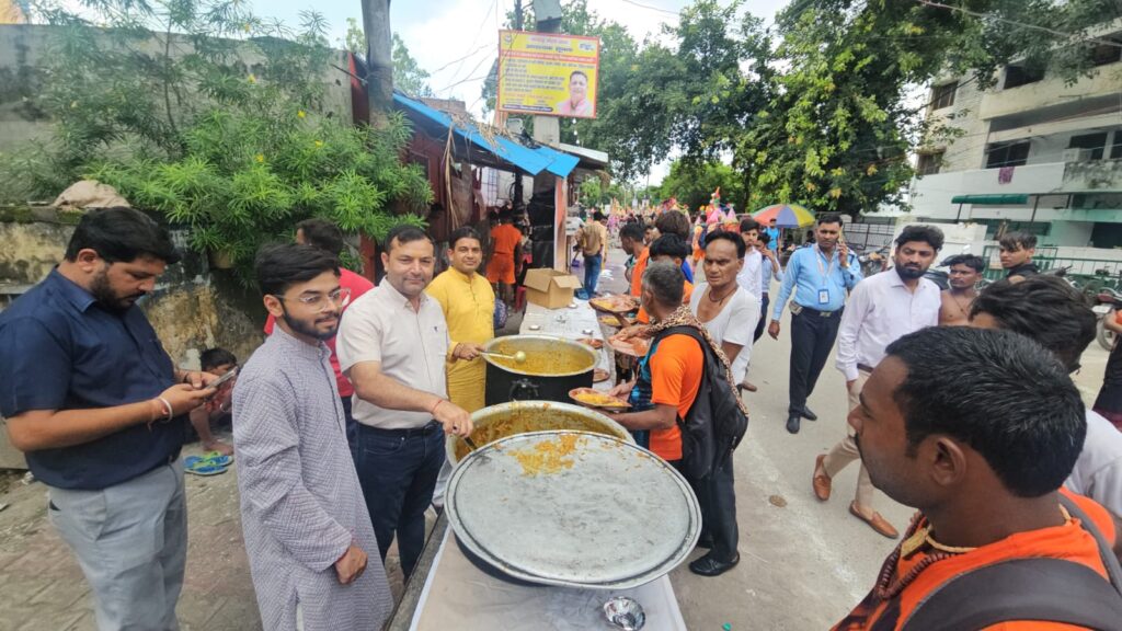रूड़की कावड़ पटरी पर आस्था का सैलाब उमड़ा है वहीं कुछ समाजसेवी और राजनैतिक पार्टियों के साथ साथ सरकारी महकमे भी शिवभक्तो की सेवा के लिए भण्डारे और चिकित्सा शिविर आयोजित कर रहे है!आज रूड़की सिंचाई विभाग नलकूप खंड द्वारा भी कावड़ पटरी पर कावड़ सेवा शिविर लगाया गया! इस कावड़ सेवा शिविर में नलकूप खंड की टीम पूरी आस्था के साथ शिवभक्तों की सेवा में जुटी नज़र आई!इस शिविर में बड़ी संख्या में शिवभक्त भोजन के साथ साथ शुद्ध पीने के पानी का लाभ उठा रहे है!इस मौक़े पर सिंचाई नलकूप खंड की अधिशासी अभियंता श्रीमती मेनका नेगी गुंसोला, एस डी ओ शोभित धीमान, जे ई सुशील सैनी, जे ई विनय कुमार, जे ई रविन्द्र कुमार,ठेकेदार कुलदीप सैनी, लोकेशवर विजय,अकबर, सौरभ आदि का इस सेवा शिविर में विशेष सहयोग रहा है जिसमें सभी कर्मचारी सुबह से ही शिवभक्तों की सेवा में नज़र आए! इस दौरान जे ई सुशील सैनी ने बताया की वह हर बार शिवभक्तो के लिए कावड़ सेवा शिविर लगाते है जिसमें भोजन, फल और शुद्ध पीने का पानी हर समय उपलब्ध रहता है!उन्होंने कहा की शिवभक्तों की सेवा से उन्हें काफी आनंद मिलता है वह शिवभक्तो की सेवा में हर समय दिन हो या रात लगे रहते है!उन्होंने कहा की उनके विभाग की कावड़ सेवा शिविर में अहम् भूमिका रहती है लेकिन और लोगो को भी इस तरह के कार्यो में बढ़चढ़कर हिस्सा लेना चाहिए!उन्होंने कहा की भगवान् शिव के आशीर्वाद से उन्हें शिवभक्तों की सेवा करने में बड़ा आनंद मिलता है आगे भी वह इसी तरह की सेवा लगातार वह करते रहेंगे! इस कावड़ सेवा शिविर में बड़ी संख्या में लोग शिवभक्तो की सेवा में मौजूद रहे! नलकूप खंड रूड़की के सभी कर्मचारी अपने अपने सहयोग से इस शिविर का आयोजन करते है जिसमें उन्हें बड़ा आंनद आता है!