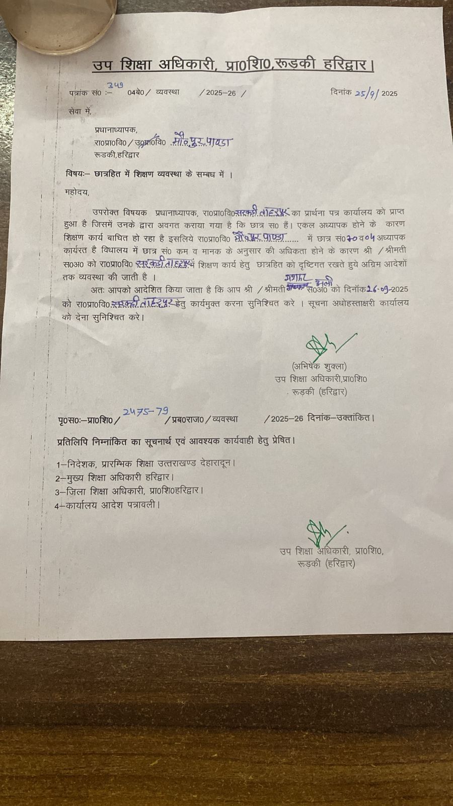 विदित हो कि उत्तराखंड शासन के सख्त आदेश के चलते राजकीय प्राथमिक विद्यालयों में शिक्षकों के संबद्धीकरण पर पूरी तरह रोक लगाई है लेकिन रूड़की उपशिक्षा अधिकारी के सामने शासनादेश कोई मायने ही नहीं रखते आलम यह है की अपनी मनमर्ज़ी से जिस शिक्षक को जहाँ चाहा वहां उसकी तैनाती कर डाली।