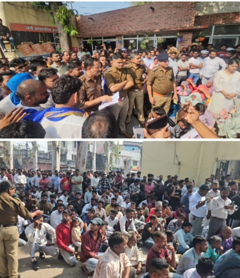 योगेश प्रमुख समर्थको ने किया कोतवाली सिविल लाइन का घेराव, हमलावरों को तत्काल गिरफ्तारी करने की पुलिस सअधिकारीयों से की मांग।