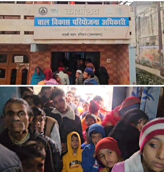 रूड़की बाल विकास कार्यालय में आधार अपडेट के नाम पर अव्यवस्था, मनमानी वसूली के आरोप, महिलाएं व बच्चे बेहाल।