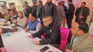 मंगलौर के वित्त एवं राजस्व अपर जिलाधिकारी दिपेन्द्र सिंह नेगी की अध्यक्षता में बहुउद्देशीय शिविर का आयोजन किया गया जिसमें सभी विभागों के अधिकारी और कर्मचारी प्रमुखता से शामिल रहे। बहुउद्देशीय शिविर में 75 शिकायत पहुंची जिनमें में से 29 शिकायत का अधिकारियो द्वारा मौक़े पर ही निस्तारण कर दिया गया। “जन-जन की सरकार, जन-जन के द्वार” शिविर में विभिन्न विभागों के माध्यम से संचालित जन कल्याणकारी योजनों से सैंकड़ो क्षेत्रीयवासियों को लाभान्वित किया गया ।इस शिविर में सैंकड़ो लोगों द्वारा प्रतिभाग किया गया था ।शिविर में पहुंची गांव की महिलाओं द्वारा अधिकारियो के सामने बताया गया की गांव के