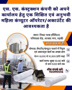 जन मुद्दे के लिए आवश्यकता है उत्तर प्रदेश/उत्तराखंड के सभी जिलो से अनुभवी ब्यूरो चीफ, पत्रकार, कैमरामैन, विज्ञापन प्रतिनिधि की। आप संपर्क करे मो० न० 9719430800,9557227369