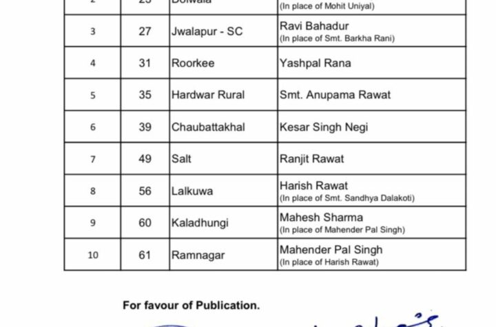 आगामी विधानसभा चुनाव को लेकर कांग्रेस ने अपनी तीसरी सूची जारी की है जिसमें रुड़की से यशपाल राणा को टिकट...